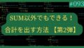 はじめに:合計といえばSUM関数!…本当にそれだけ?「Excelで合計を出すなら、SUM関数でしょ?」そう思ったあなた、大正解!ほとんどの場合、SUM関数が最も簡単で分かりやすい方法です。でも、ちょっと待ってください!好評だった「合計はSU...