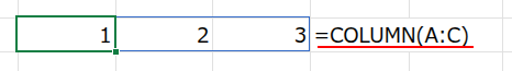 2. COLUMN(A:C): これは、列番号を取得する関数です。