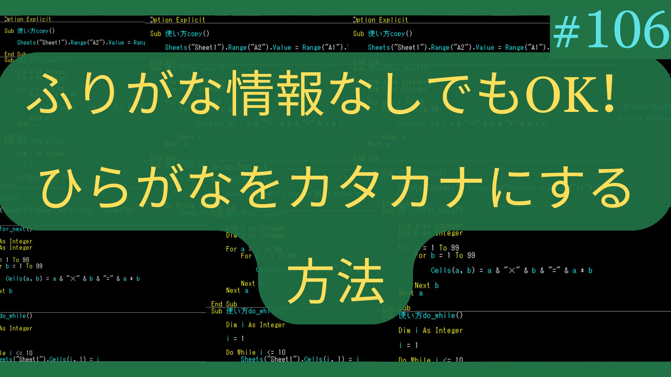 「この列に入力されている『ひらがな』の部分だけ、全部『カタカナ』に一括変換したい!」