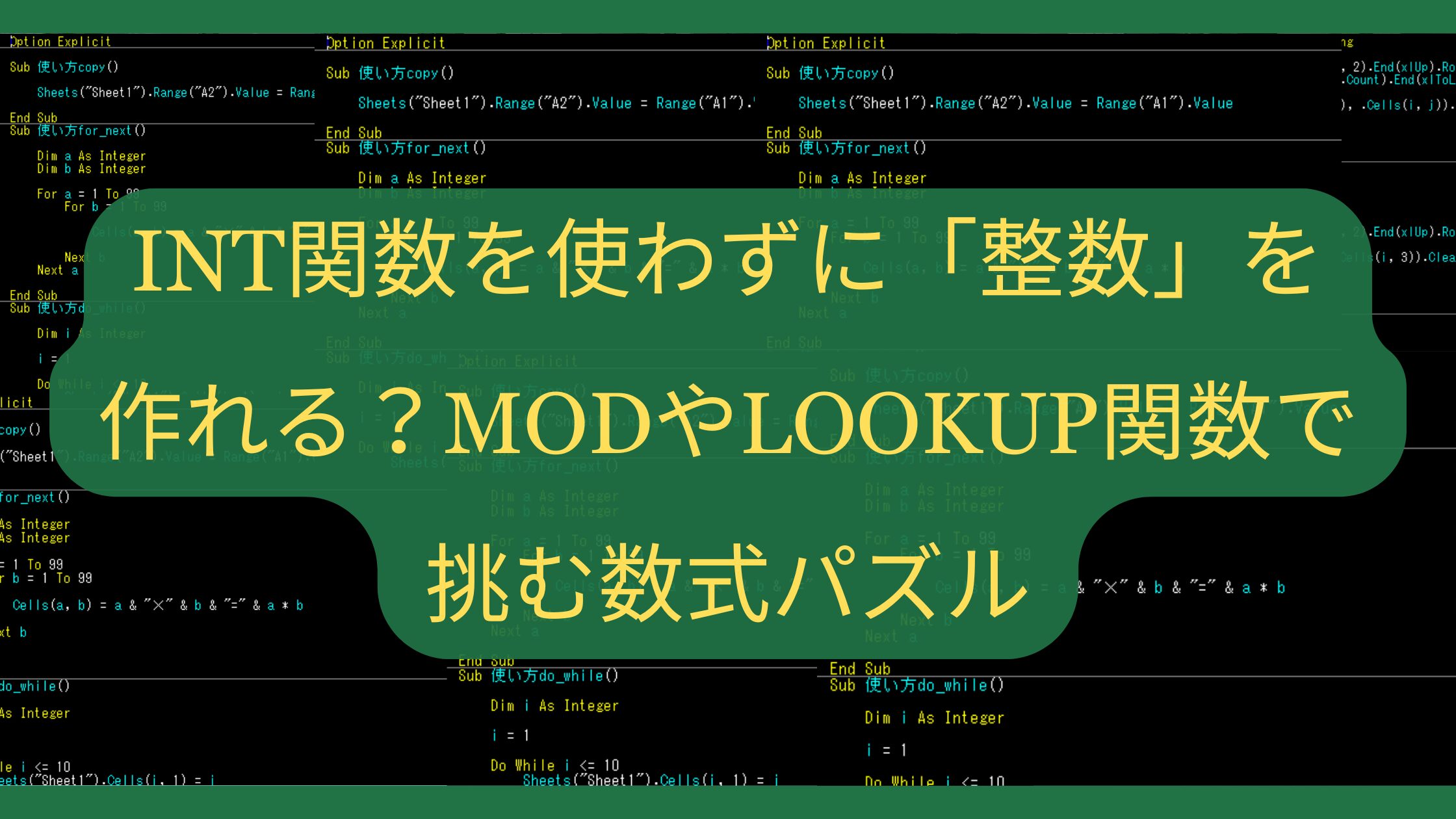 たった一つの「整数にする」という操作でも、MODの余りの性質を利用したり、LOOKUPの近似一致を利用したりと、様々なルートがあることが分かりました。